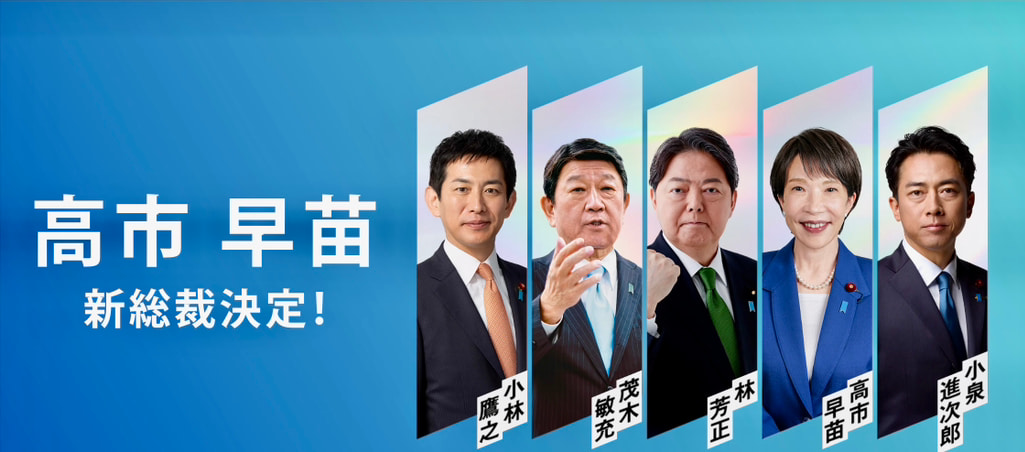 ▲自民党総裁選の5候補。右から2番目が新総裁に選出された高市早苗氏(自民党公式サイトより)