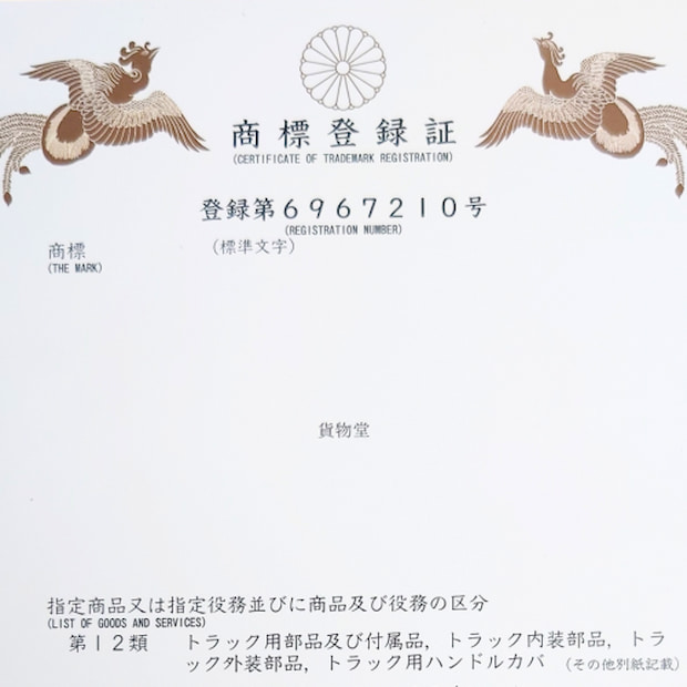 認証・表彰トラック用品と運送物流用品を専門に取り扱う貨物堂(岡山県倉敷市)は5日、9月12日付で自社ブランド「貨物堂」の商標登録が完了したと発表した。