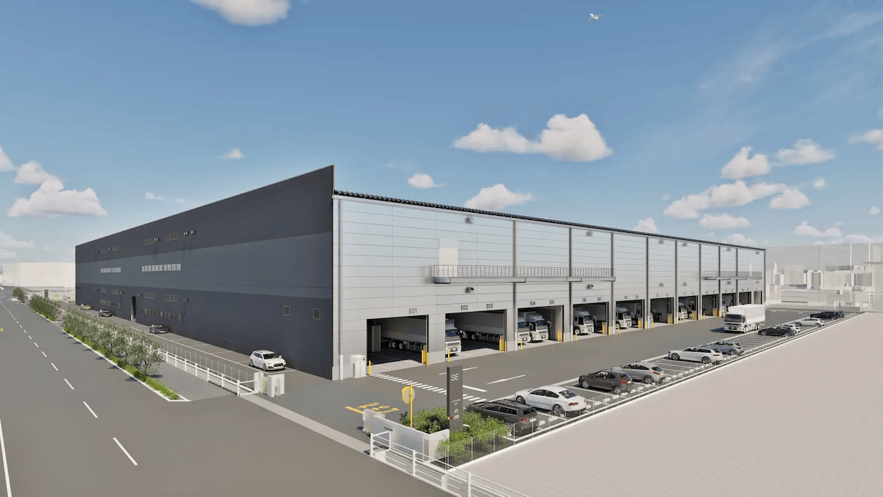 トラックバースは大型車40台対応、垂直搬送機や荷物用エレベーター、ソーター増設構造、庫内空調対応など将来の物流ニーズにも配慮。LED照明や節水器具、太陽光発電システムにも対応し、環境性能も強化。BELS(ベルス)やCASBEE(キャスビー)認証の取得も予定している。