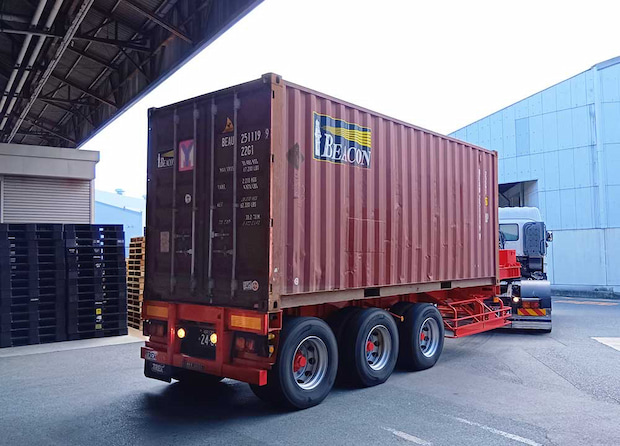 ▲アドブルーを運んコンテナトラック(出所:西久大輸倉庫)