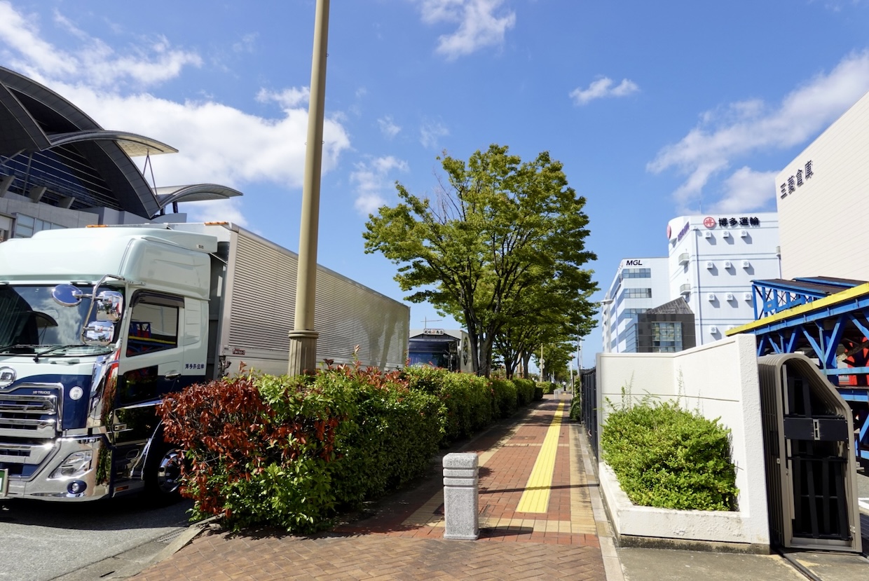 ▲マリンメッセ福岡周辺には、住友倉庫九州など港湾物流を支える主要拠点が立ち並ぶ