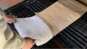 展示では「包装で創るストレスフリーな世界」をビジョンに掲げ、粉体包装に関連する独自技術を紹介。特に、粉漏れや荷崩れを防止する「ナノパーフォレーション」加工、物流現場でのパレット積載効率を高める両底・片底袋、トラック荷台の汚れ軽減や清掃コスト削減が期待される「インナーパッチ・ダブルパッチ」など、包装と物流の課題解決に資する製品群を披露する。