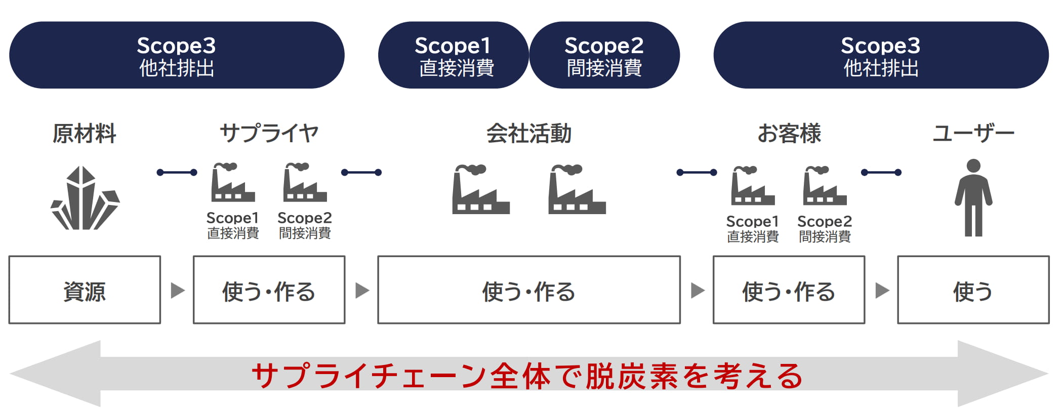 C-TurtleはGHGプロトコルに基づくスコープ1(自社での直接排出)、スコープ2(電力使用による間接排出)、スコープ3(サプライチェーン全体の排出)の算定に対応する。特にスコープ3の算定では従来の産業連関表ベースの排出原単位ではなく、「総排出量配分方式」を採用した点が画期的だ。