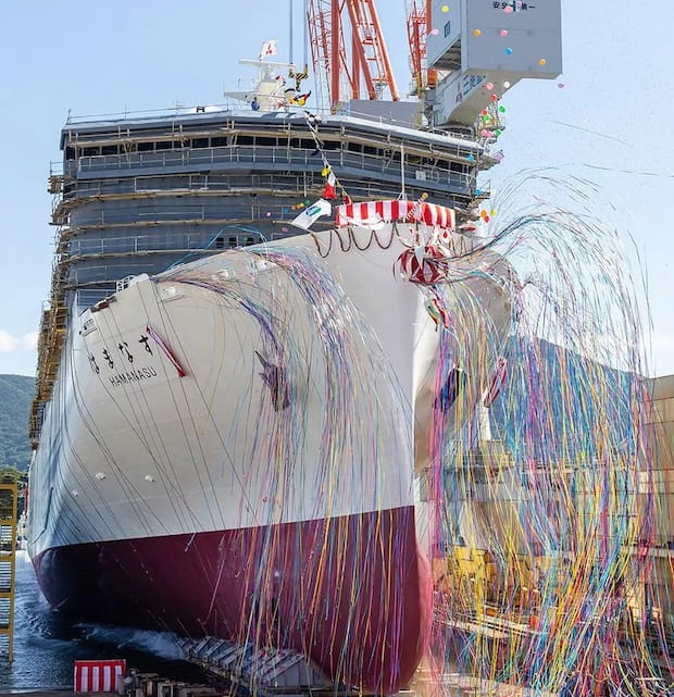 荷主三菱造船(東京都港区)は9日、新日本海フェリー(大阪市北区)と鉄道建設・運輸施設整備支援機構(JRTT)向けに建造中の大型カーフェリー「はまなす」の命名・進水式を、下関造船所江浦工場(山口県下関市)で執り行ったと発表した。「はまなす」は、北海道小樽市と京都府舞鶴市を結ぶ航路に就航予定で、2026年6月の引き渡しを見込んでいる。