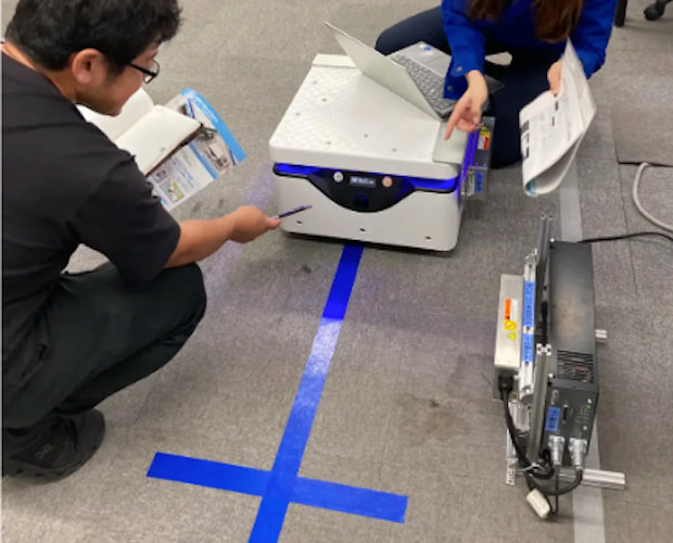 ▲AMR操作体験会(出所:ビー・アンド・プラス).