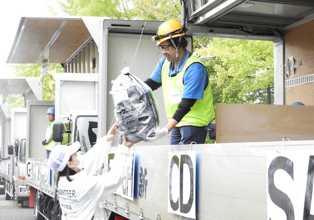 ▲スタート地点で手荷物を預かる様子(出所:新潟運輸)
