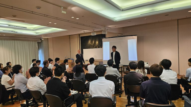 森岡氏は現役時代の経験を踏まえ、チームの信頼関係の築き方や自己管理の重要性、継続的に努力を続ける姿勢の大切さを語った。グループワークでは社員との意見交換も行われ、現場での課題や悩みにも真摯(しんし)に耳を傾けたという。