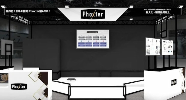 同社は生成AIによるチャット形式のトラブル復旧支援を搭載し、従来は数時間から数日かかっていたエラー復旧を数分に短縮できる仕組みを実演する。段差5ミリ、溝8ミリなど現場環境を再現したスロープ走行や、Phoxter製画像処理コントローラーによるパレット上ケースの品種判別・ルート最適化のデモも行う。