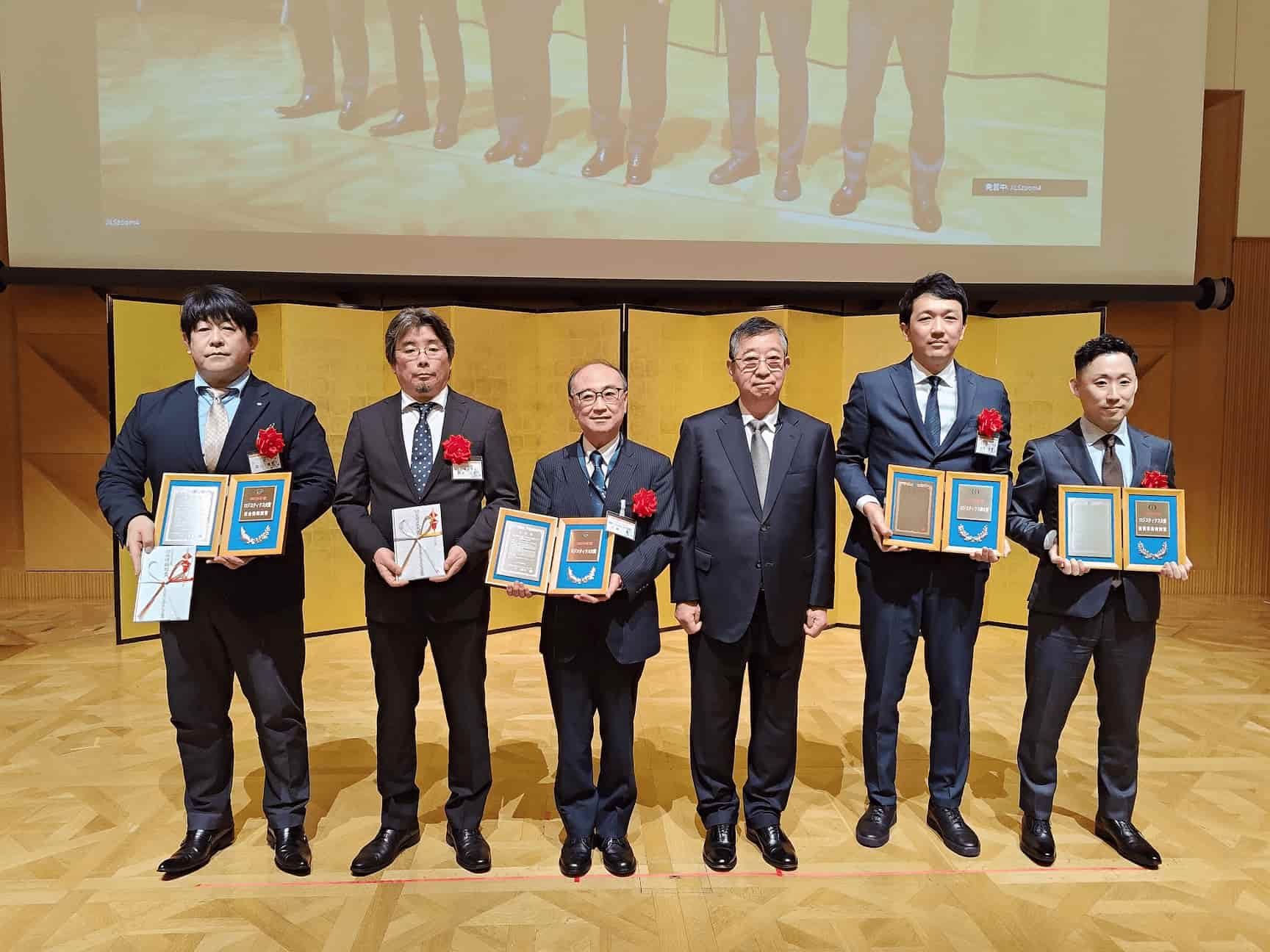 ▲受賞者は左からクボタの武山Alex義知氏、traevoの鈴木久夫氏、TDBLの小島薫氏、JILS会長の大橋徹二氏、ミスミの山本智博氏、花王の徳山尚昭氏