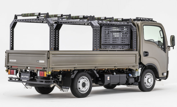 展示車両はFORWARDとELFmioで、FORWARDはメッキ用品やイルミネーション用品、i-Coolシリーズ、BESTFIX製品をウイングボディ内で紹介する。ELFmioは新商品の「CROSS STYLE ACCESSORIES」を装着した仕様となる。このほか、停車時クーラー「Everycool」も展示される。物販コーナーではハードカーゴ限定グッズを販売する。