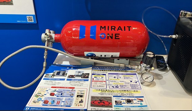 展示された水素用容器は、ミライト・ワンが展開する小容量水素容器の充てんインフラ事業に関連し、実際の利用例として紹介された。水素関連技術は脱炭素社会の実現に向けたエネルギー転換の一環として注目されている。今回の展示は、水素供給インフラの拡大や小容量利用分野での普及に寄与する。