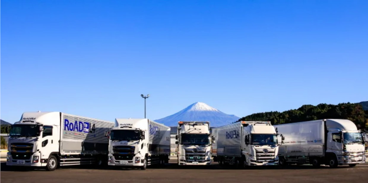 ▲UDトラックス、いすゞ、先進モビリティ、日野、三菱ふそうの自動運転実験車両(出所:豊田通商)