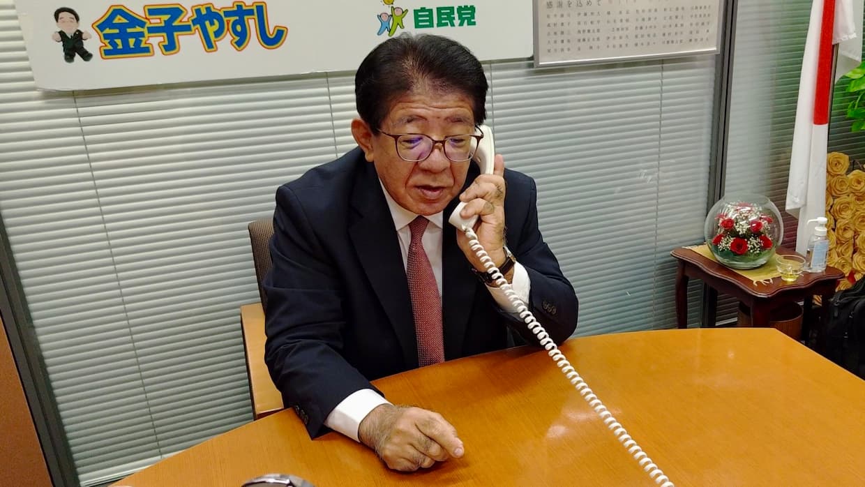 ▲16時30分、入閣を伝える電話を受ける金子議員