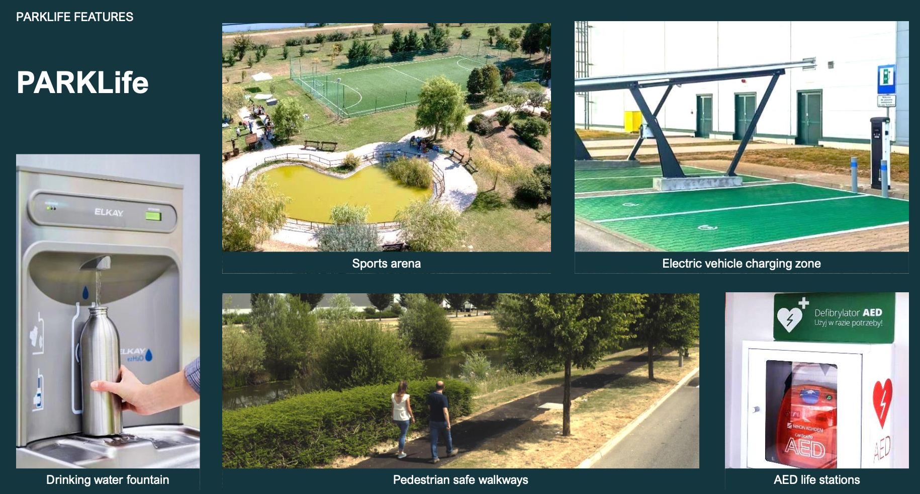 さらに、働く人々の環境改善にも注力する。「PARKLife」(パークライフ)と名付けたアメニティプログラムを展開し、スポーツアリーナ、電気自動車(EV)充電ゾーン、ろ過機能付きの飲料水供給機、安全に配慮した歩行者用通路、AED(自動体外式除細動器)ステーションなどを敷地内に設置する計画だ。これは、人材確保が課題となりつつあるインドにおいて、入居企業が従業員にとって魅力的な職場環境を提供できるよう支援する取り組みである。男女別トイレや障がい者対応トイレも標準仕様として設置し、入居企業側の追加工事負担を軽減する。