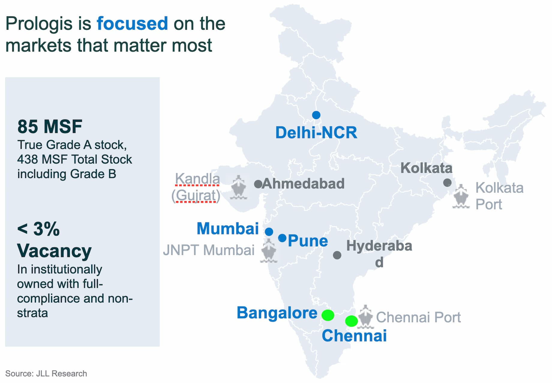 インド全体では4070万平方メートルの倉庫ストックのうち、近代的な仕様を持つグレードAのストックは790万平方メートルに留まると推計されており、依然として供給が需要に追いついていない状況が見受けられる。特に大都市圏における消費の拡大やEコマースの浸透により、高品質な物流施設への需要は高まっているという。