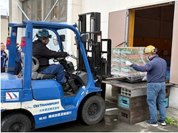 訓練には115団体、2000人が参加し、各地に分散した会場で実践的な内容の訓練が行われた。同協会からは、諏訪地区輸送協議会の会員事業所と協会職員の計5人が参加。「緊急物資輸送車」の垂れ幕を掲げたトラック1台とフォークリフト1台を出動させ、救援物資の搬入訓練を実施した。