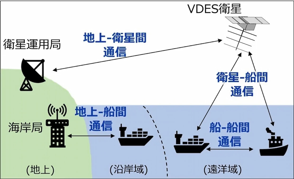 VDESは、船舶自動識別装置(AIS)を拡張した次世代通信システムで、地上・海上・衛星間の双方向データ通信を可能にする。航行情報の共有によって、海上安全の向上や入出港の効率化、温室効果ガス(GHG)排出削減などの効果が期待されており、2028年1月に予定されるSOLAS条約改正で法定機器となる見通しだ。