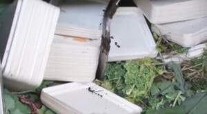 ▲(左から)バガス容器分解前の様子、バガス容器分解後の様子(出所:折兼ホールディングス)