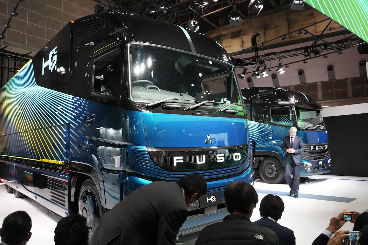 荷主三菱ふそうトラック・バス(川崎市中原区)は29日、「Japan Mobility Show 2025」のプレス向け内覧会で、水素を動力とする2種類の大型トラックを世界初公開した。同社のカール・デッペン社長は「カーボンニュートラル輸送に“単一解”はない。多様な技術を並行して評価し、顧客と社会に最適なソリューションを提供する」と述べ、燃焼式と燃料電池式の2方式による開発方針を示した。
