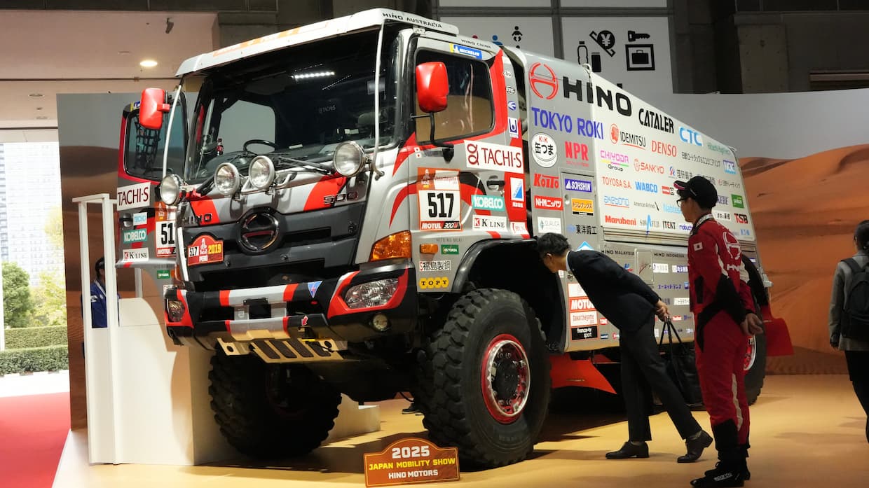 展示では、2026年発売予定の新型「日野セレナ」「日野レンジャー」を披露。「品質・耐久性・信頼性」(QDR)を追求する姿勢を改めて示し、ダカールラリー参戦車両も展示して技術力をアピールした。また、点検・整備から部品供給までを網羅したトータルサポート体制を説明し、「販売会社を含むグループ総合力で、お客様の稼働を止めない支援を続ける」とした。