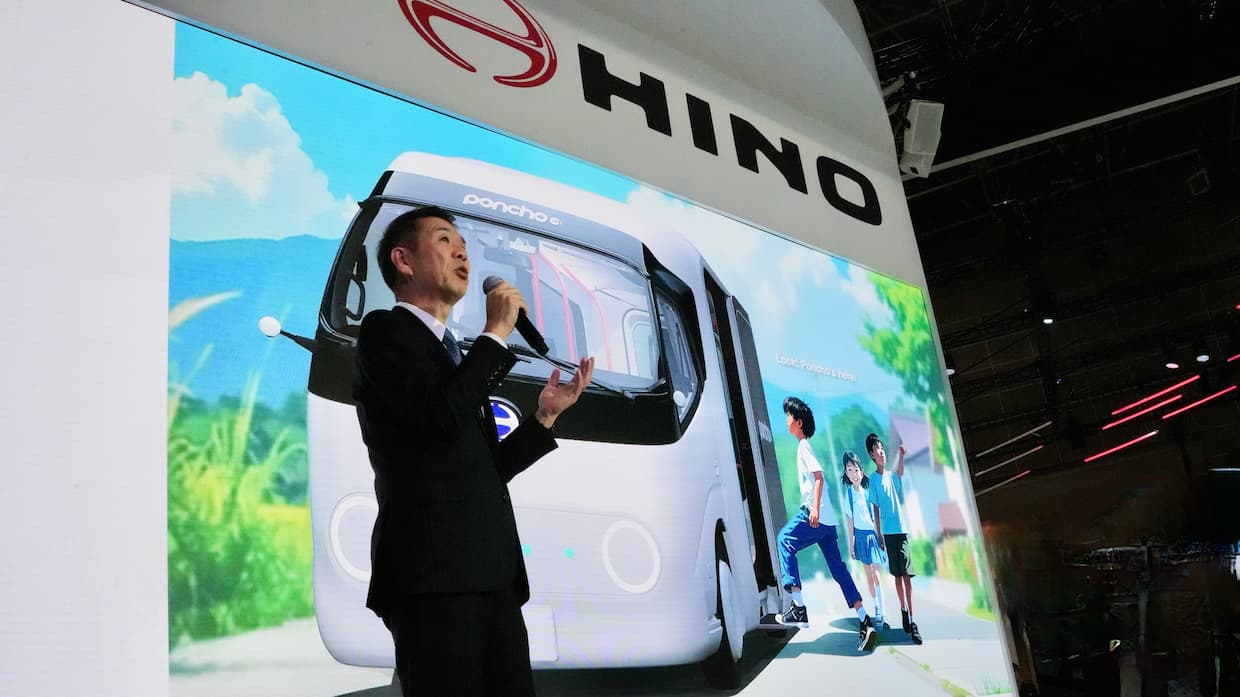 ▲「ポンチョドット」のコンセプトを紹介する日野自動車の小木曽聡社長