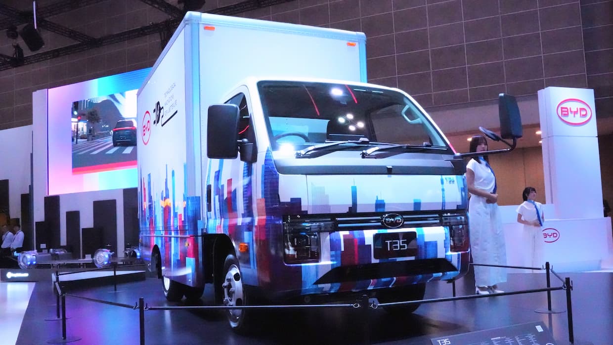 技術の方向性は、4社それぞれの強みを反映している。BYDはEV専業メーカーとしての完成度を前面に押し出し、航続250キロの小型電動トラック「Te35」でスマートトラック化を推進。災害時給電やソフトウエア更新など、電気車両ならではの利便性を物流に取り込んだ。