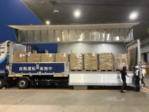 ロジスティクスT2(東京都千代田区)は30日、加工食品メーカー6社の共同物流を担うF-LINE(中央区)が、同社の自動運転トラックによる幹線輸送の商用運行に11月から参画すると発表した。川崎物流センターと西宮物流センター間(綾瀬スマートIC-吹田IC間、510キロ)で、調味料や食用油、小麦粉などの製品を定期輸送する。
