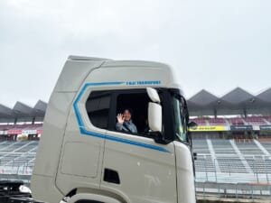 トラボックス吉岡会長、富士SWで大型トラック走行