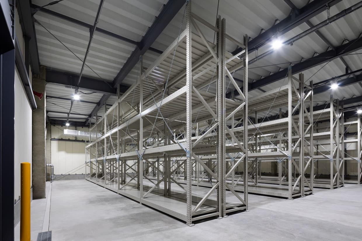 新設された危険物倉庫は延床面積1000平方メートル。SGリアルティが初めて手がけた空調付き危険物専用施設で、温度変化に弱い化粧品の品質保持に配慮している。消火設備にはCO2方式を採用し、消防法上の要件を満たす高水準の安全設計を施した。一般倉庫(延床7813平方メートル)には化粧品製造所を併設し、日本語成分表示ラベルの貼付にも対応する。