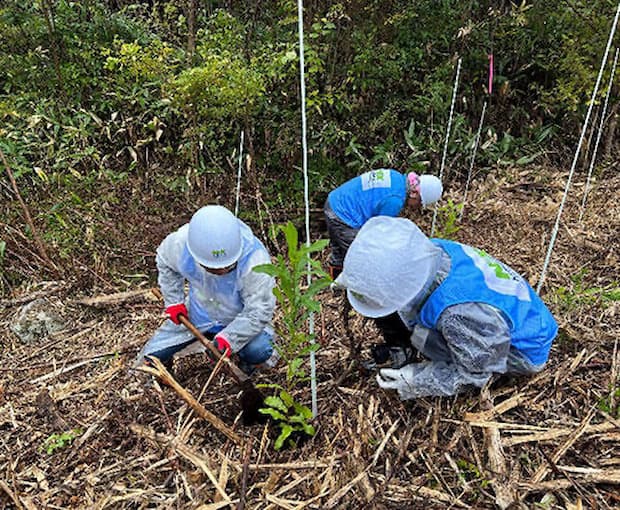 同社は環境社会貢献活動の一環として、山形県飯豊町と鳥取県日南町に「NXグループの森」を設け、年2回、町役場や森林組合の協力を得ながら植樹や下草刈りなどを行っている。これまでに2230人が参加し、植樹した苗木は累計1万2400本に上る。