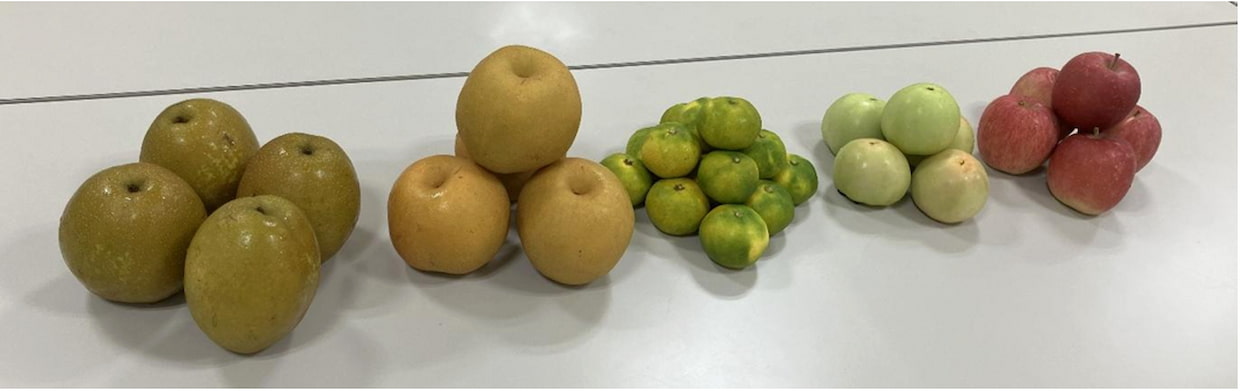 搭載されたのは、青森県産りんご「ふじ」(ファーマインド)、福島県産トマト「ドキア」(ワンダーファーム)、千葉県産和梨「王秋」(千葉県農林総合研究センター)、新潟県産和梨「新興」(Pear Japan)、福岡県産温州みかん「日南1号」(熊本大同青果)。