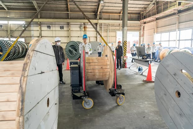 人機一体とタツタ電線は22年に資本提携を締結し、工場内の安全性向上と作業者負担軽減を目的に「人機プラットフォーム」で共同開発を進めている。両社は今回の展示を通じて、電線ドラム以外の重量ロールなど多分野への展開を目指す。
