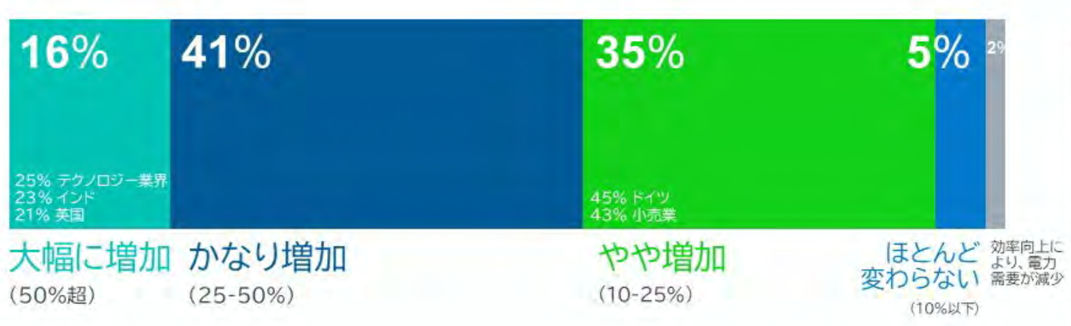 しかし、AIの導入は膨大な電力消費を伴う。回答企業の76%が今後5年間で自社施設の電力需要が増加すると予測しており、その主因として71%が「AI」を挙げている。つまり、AI活用による競争力強化を急ぐあまり電力需要が爆発的に高まり、その結果、拠点の選定基準が「人が安い場所」から「電力が安定している場所」へと強制的にシフトしている構図だ。