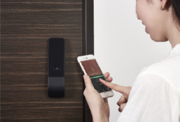 ▲スマホや専用カードで解除できる専用スマートロック「NinjaEntrance」(出所:ライナフ)