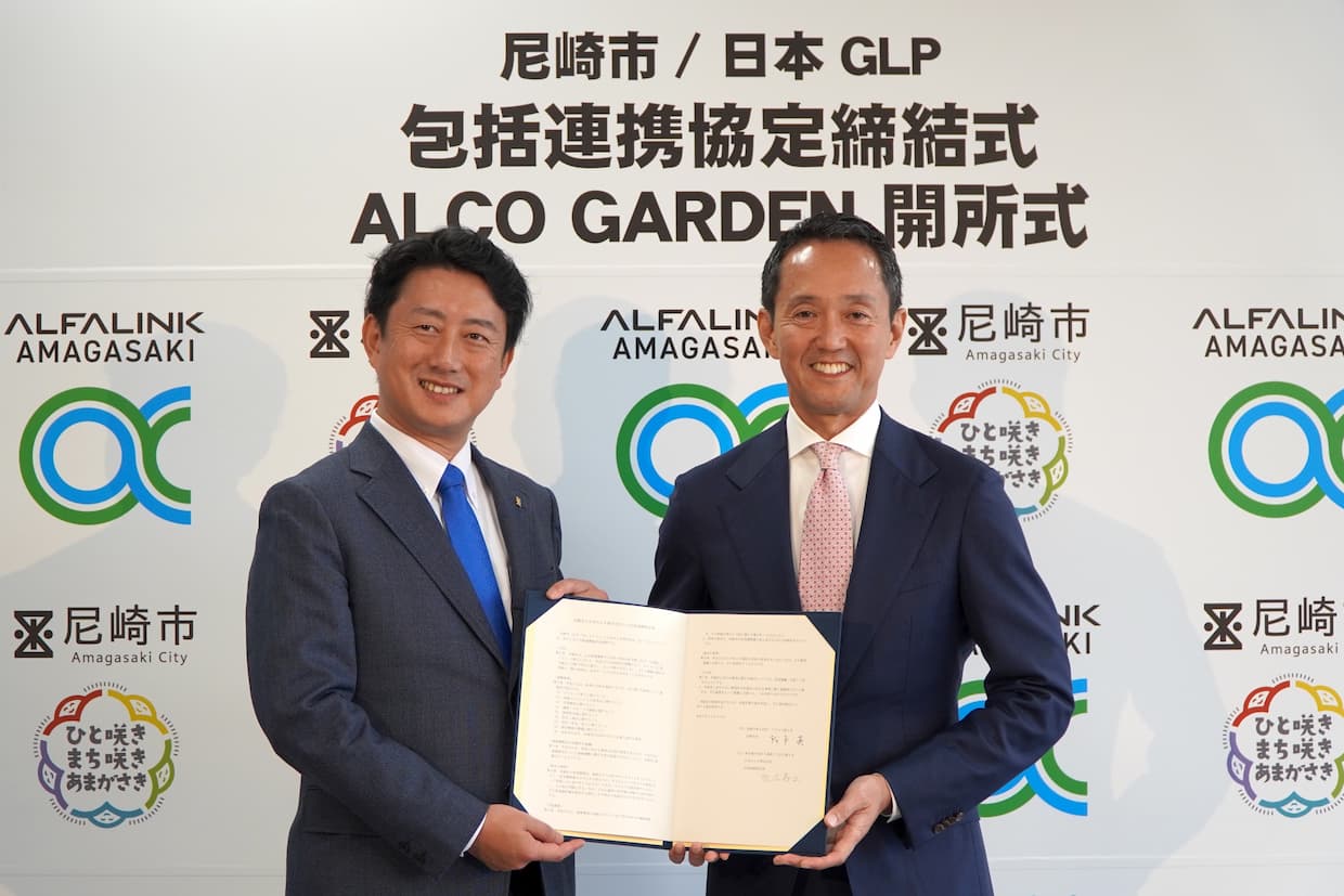 同社は2006年に「GLP尼崎」で同市に初進出して以来、地域と関係を深めてきた。今回の新施設開業に合わせ、尼崎市と包括連携協定を締結し、地域課題の解決や都市機能の整備、防災・子育て支援、学校教育などで行政と共創する姿勢を明確にする。