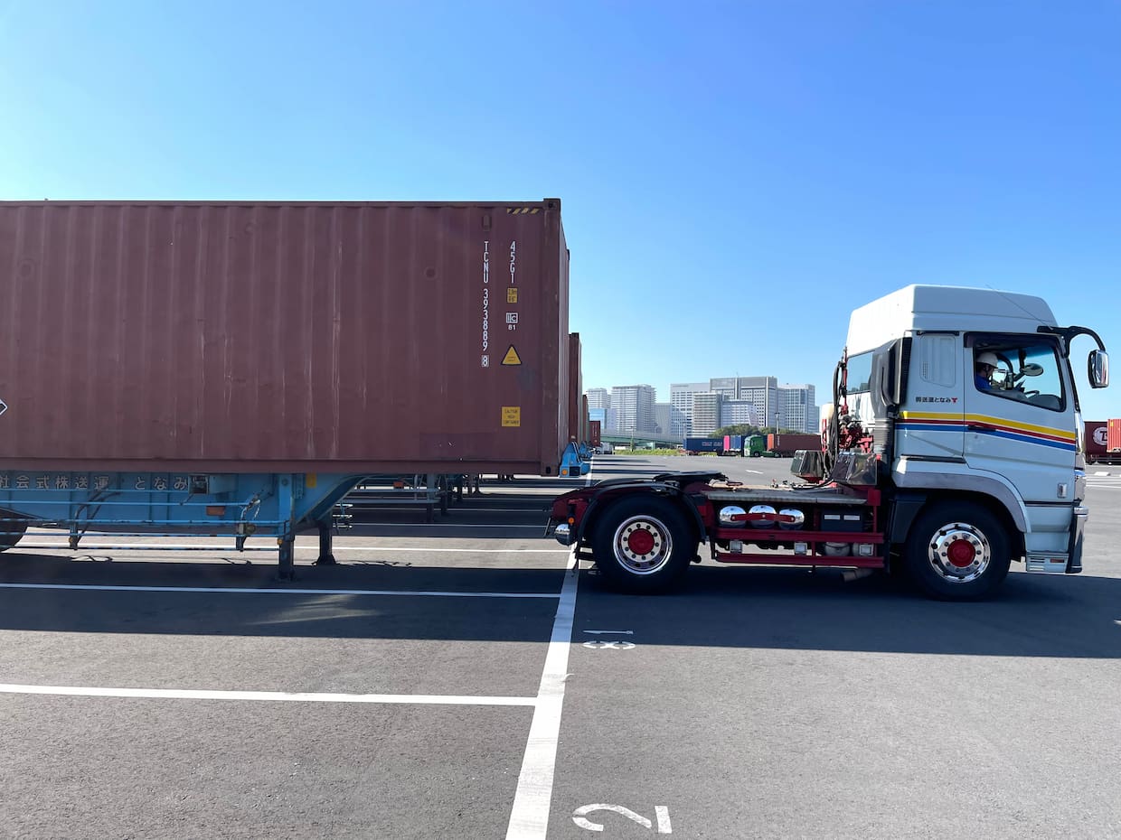 説明会では、東京港デポにおいて、実際にコンテナヤード間を往復輸送するトラックの動きも実演。コンテナヤードから搬出してきた輸入コンテナを東京港デポに仮置きしたトラックが、そのまま別の輸出貨物を積んだ仮置きコンテナをけん引してコンテナヤードへと搬送する運用の様子を公開した。