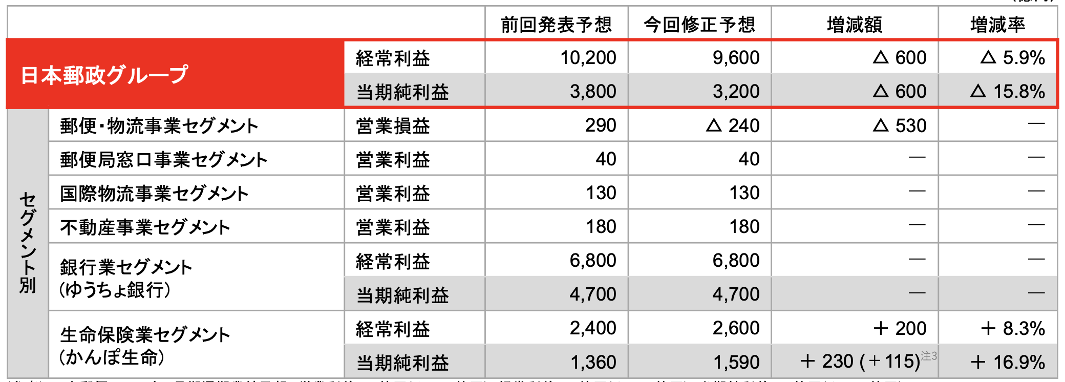 ▲2026年3月期通期業績予想(出所:日本郵政)
