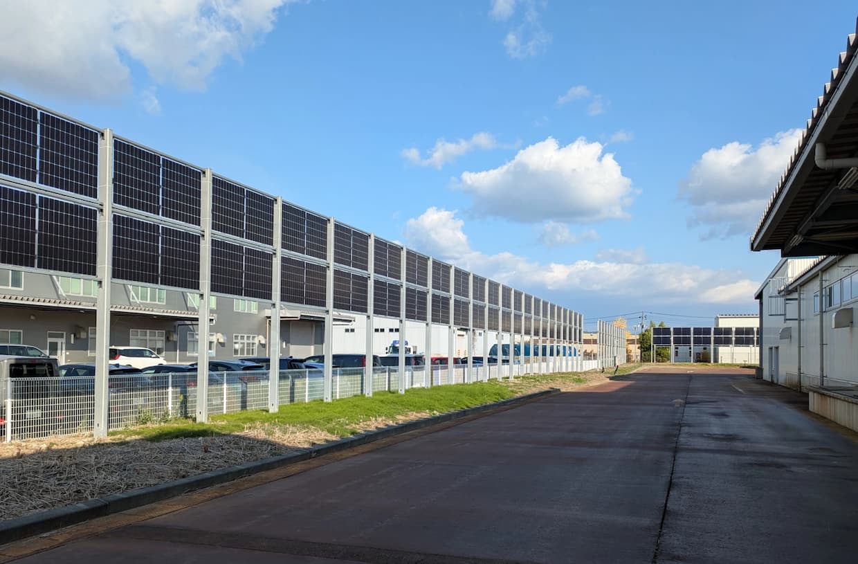 VERPAは、豪雪地帯や屋根構造の制約、敷地の狭さなど従来型設備の導入が難しかった事業所でも設置可能。敷地境界線沿いや通路脇など、幅2.5メートルのスペースがあれば施工でき、パネルを地上2メートル以上に設置することで安全柵やフェンスが不要となり、敷地を他用途と共用できる利点がある。