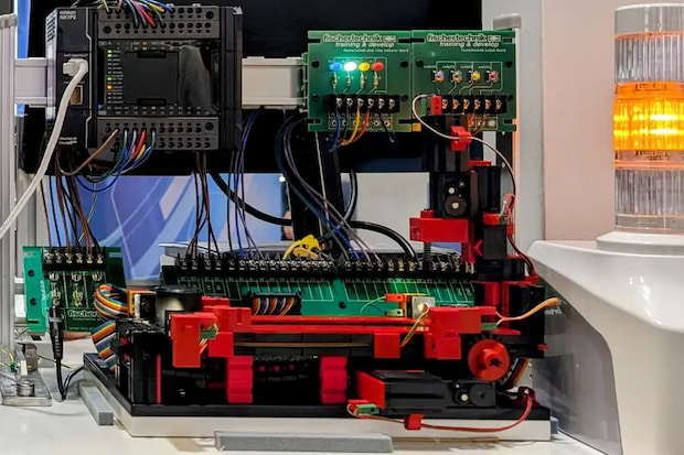 デモは工場を模した模型を用い、インターネット経由で事務用PCに侵入した攻撃者が管理PCを乗っ取り、生産ライン(PLC)を不正停止させる一連の流れを提示する。