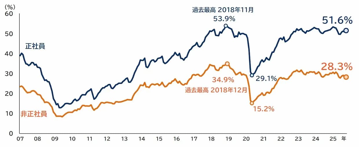同社は「若手人材が首都圏に流出するなか、地方を中心にスキルのある正社員を採用するのが難しくなっており、今後も正社員不足を感じる企業の割合は高止まりすると予想される」としている。