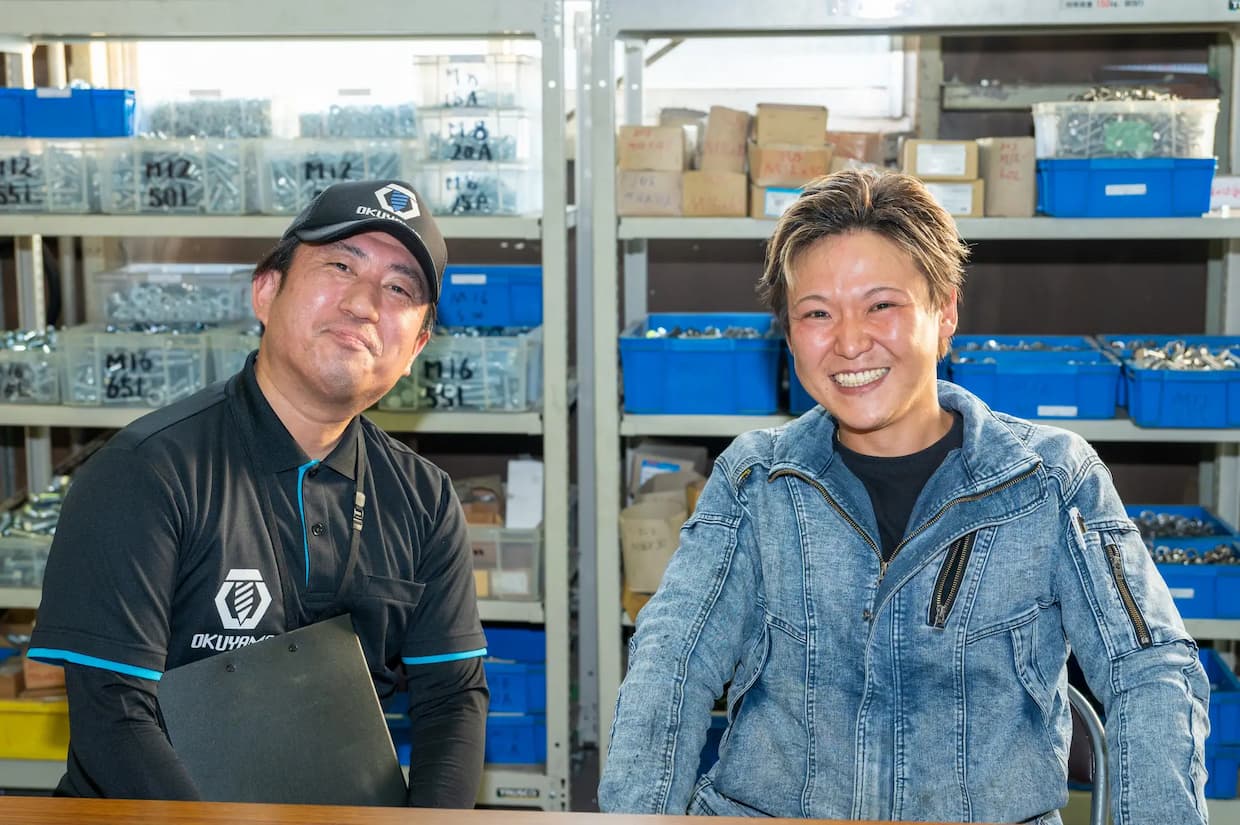 ▲奥山製作所スタッフと島戸製作所高木リーダー(出所:奥山製作所)