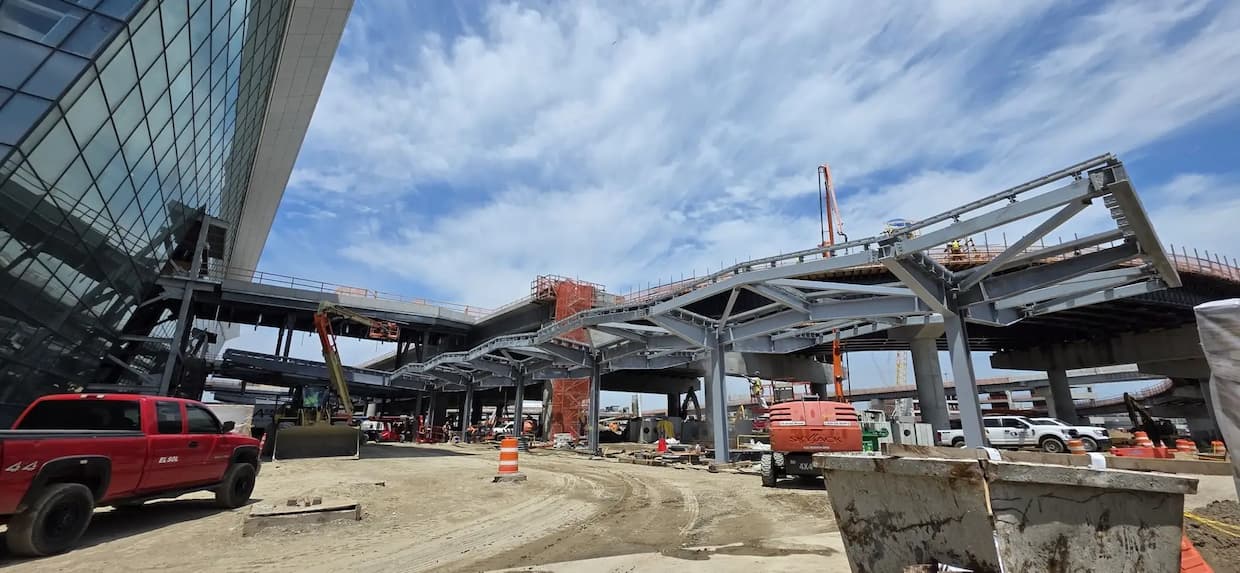 JFK新ターミナル1は、既存ターミナル1と旧ターミナル2・3跡地に建設され、23ゲートや商業施設を設ける大型プロジェクト。国際ハブ空港の刷新にあたり、膜構造による大空間の構築と、輸送効率向上につながる軽量資材の活用が進んでいる。