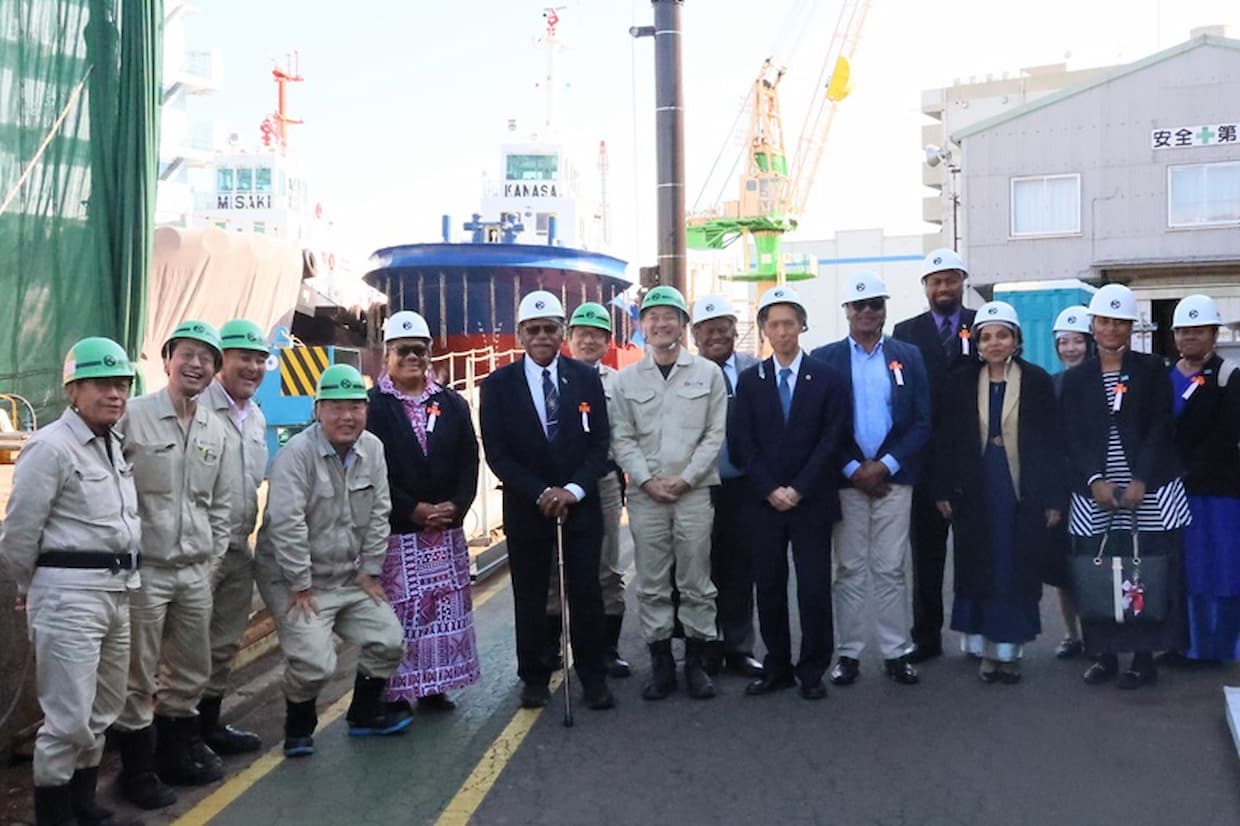 京浜ドックはグループ唯一の造船会社で、ハイブリッド推進船やLNG(液化天然ガス)燃料船、アンモニア燃料船など、環境対応船を相次いで実用化している。今回の視察は、フィジーの海事産業発展に向けた技術選定の参考事例として位置づけられている。