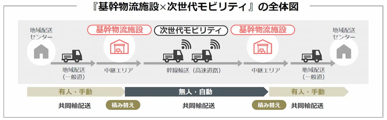 ロジスティクスアビームコンサルティング(東京都中央区)は27日、三菱地所が推進する「基幹物流構想」で、次世代モビリティーと荷主・物流企業をつなぐDX(デジタルトランスフォーメーション)デザインの策定を支援すると発表した。自動運転トラックやダブル連結トラックの普及を見据え、物流業界が抱える人手不足や脱炭素要請に対応する社会課題解決型インフラの構築を目指すもので、国が描く幹線輸送の自動化シナリオとも軌を一にする。