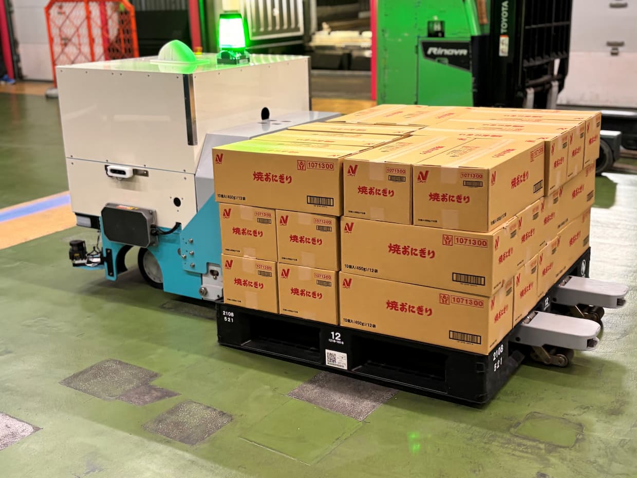 さらに、現在開発中の「冷凍AMR(自律走行搬送ロボット)」稼働の様子も公開。冷凍エリアから荷さばきエリアまで、温度帯をまたぎ、日々のレイアウト変更も伴う現場運用を担うため、結露などの影響も検証され、実運用に向けた開発を続けているという。