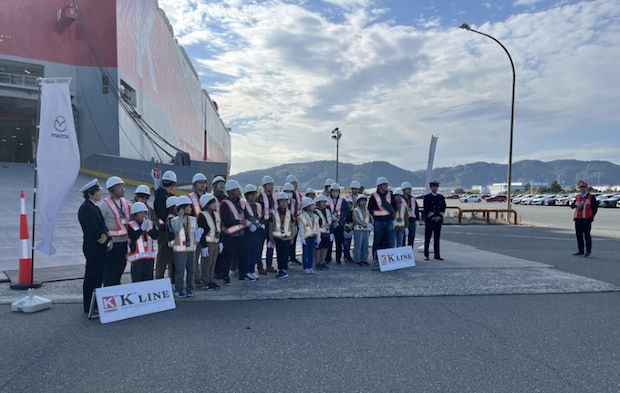 環境・CSR川崎汽船は11月28日、マツダ防府工場主催の「自動車専用船見学会」に協力したと発表した。同月24日に開催され、小学4年生から高校生までの児童・生徒と保護者56人(28組)が、同社運航の自動車専用船「TETHYS HIGHWAY」の船内を見学した。