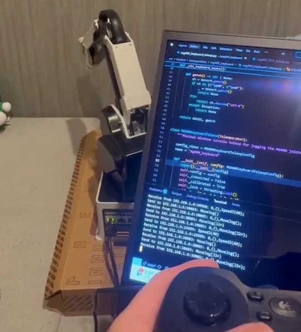 プロジェクトは、ドボット製品の正規代理店であるアフレル(福井市)からMG400の貸与を受けて進めており、開発成果は今後、実機デモや展示会などでの公開も検討されている。