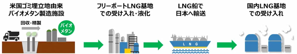大阪ガスの100%子会社であるOsaka Gas USA Corporation(OGUSA)の傘下企業が、ごみ埋立地由来のバイオメタンを2万6000ノルマルリューベ(20トン)購入する契約で、調達したバイオメタンはフリーポートLNG(液化天然ガス)基地で液化後、関西のLNG基地で受け入れ、都市ガスとして供給する。北米で発行される環境価値証書「M-RETS」の活用も予定している。