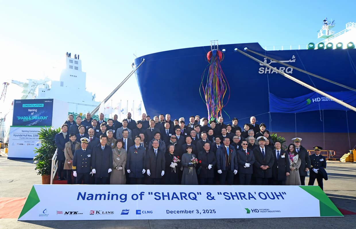 ロジスティクス日本郵船は4日、カタール国営石油会社カタールエナジー向けの新造液化天然ガス(LNG)運搬船2隻の命名式を、3日に韓国・蔚山のHD現代重工業で開催したと発表した。共同出資する合弁会社によるプロジェクトで、船名は「Sharq」(シャーク)と「Shra’ouh」(シャラオウ)。日本郵船はShra’ouhの船舶管理を担当する。