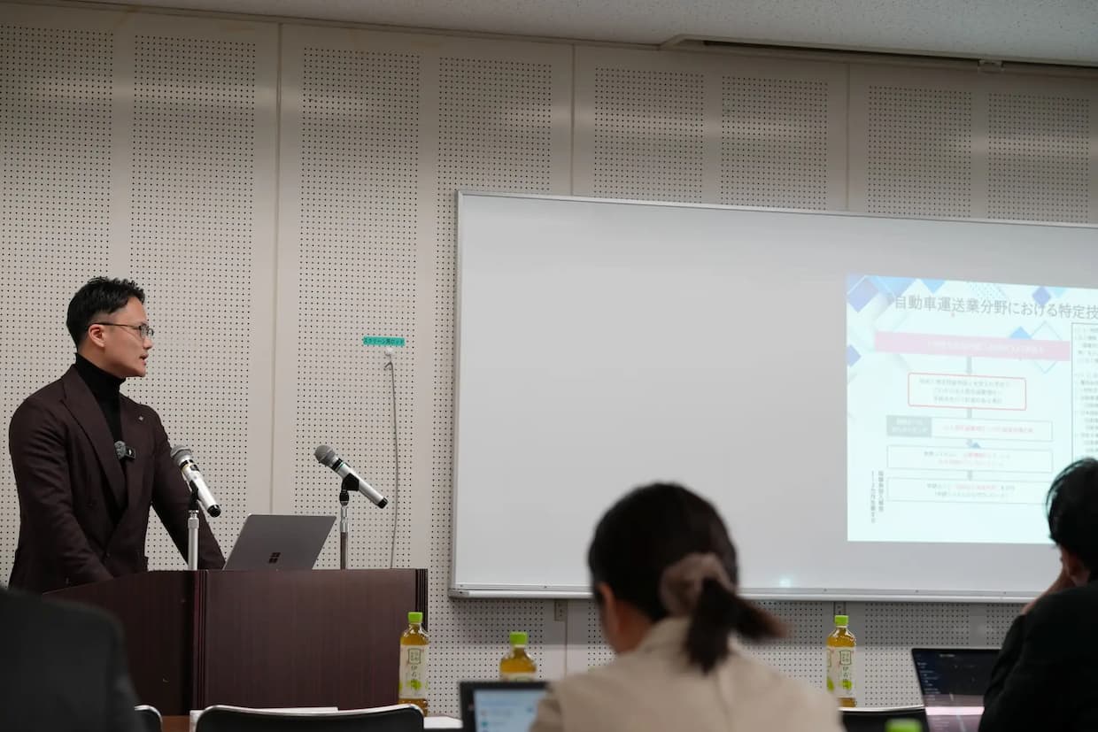 第3部では、行政書士法人Royal Sphere(ロイヤル・スフィア)の山角征和氏が、特定技能外国人材の受け入れ条件や付随業務の線引きなど、制度運用上のポイントを詳述した。